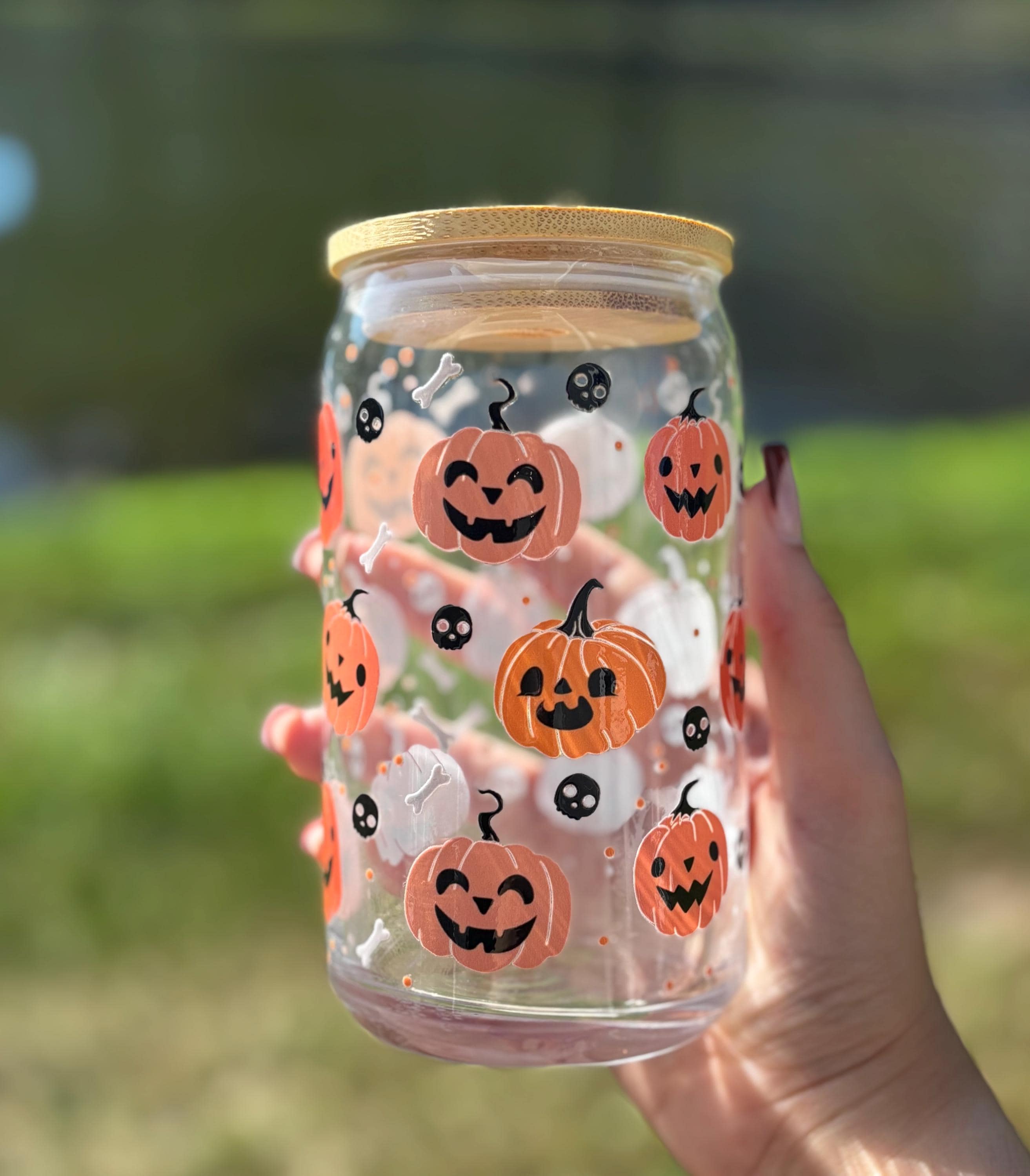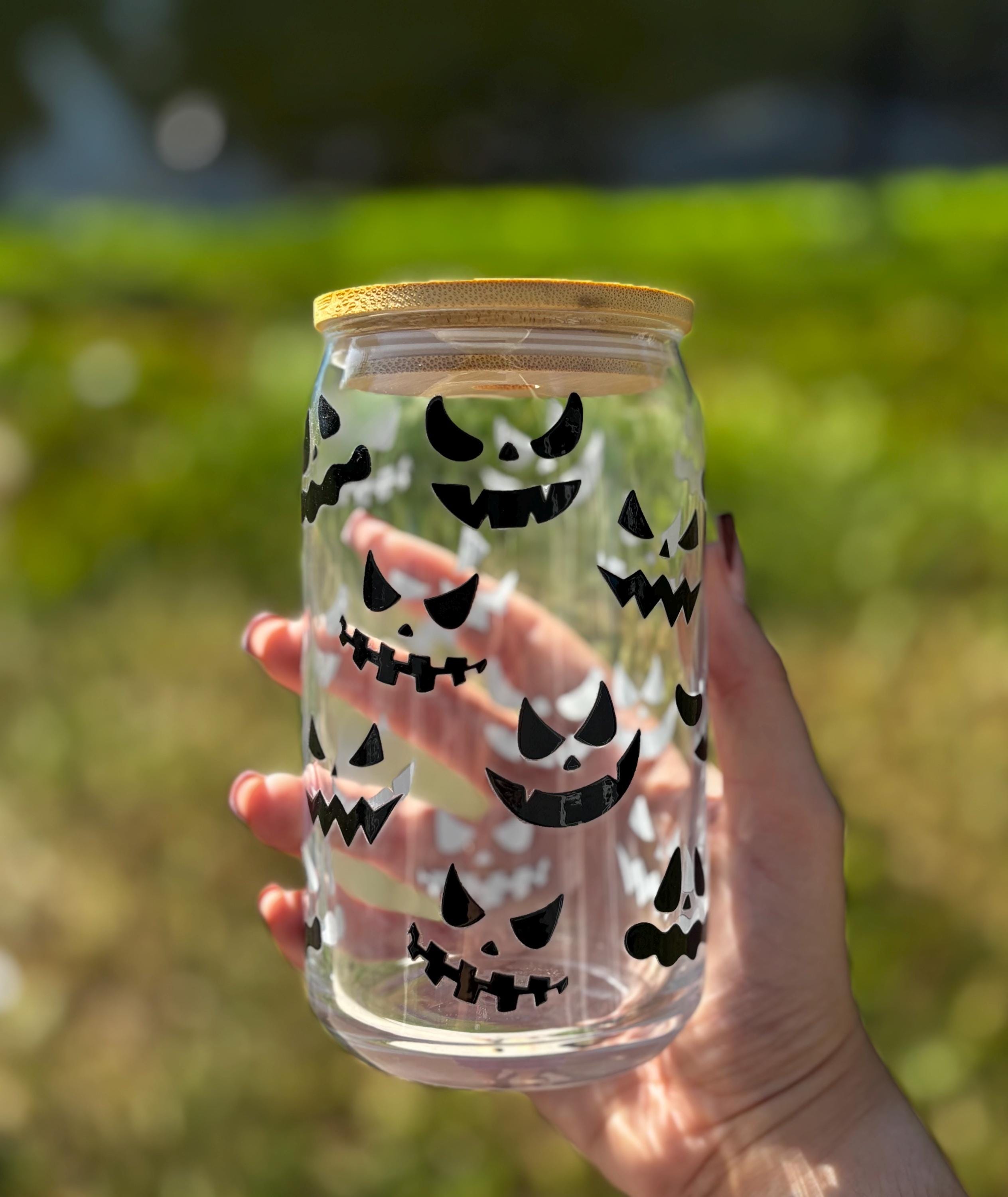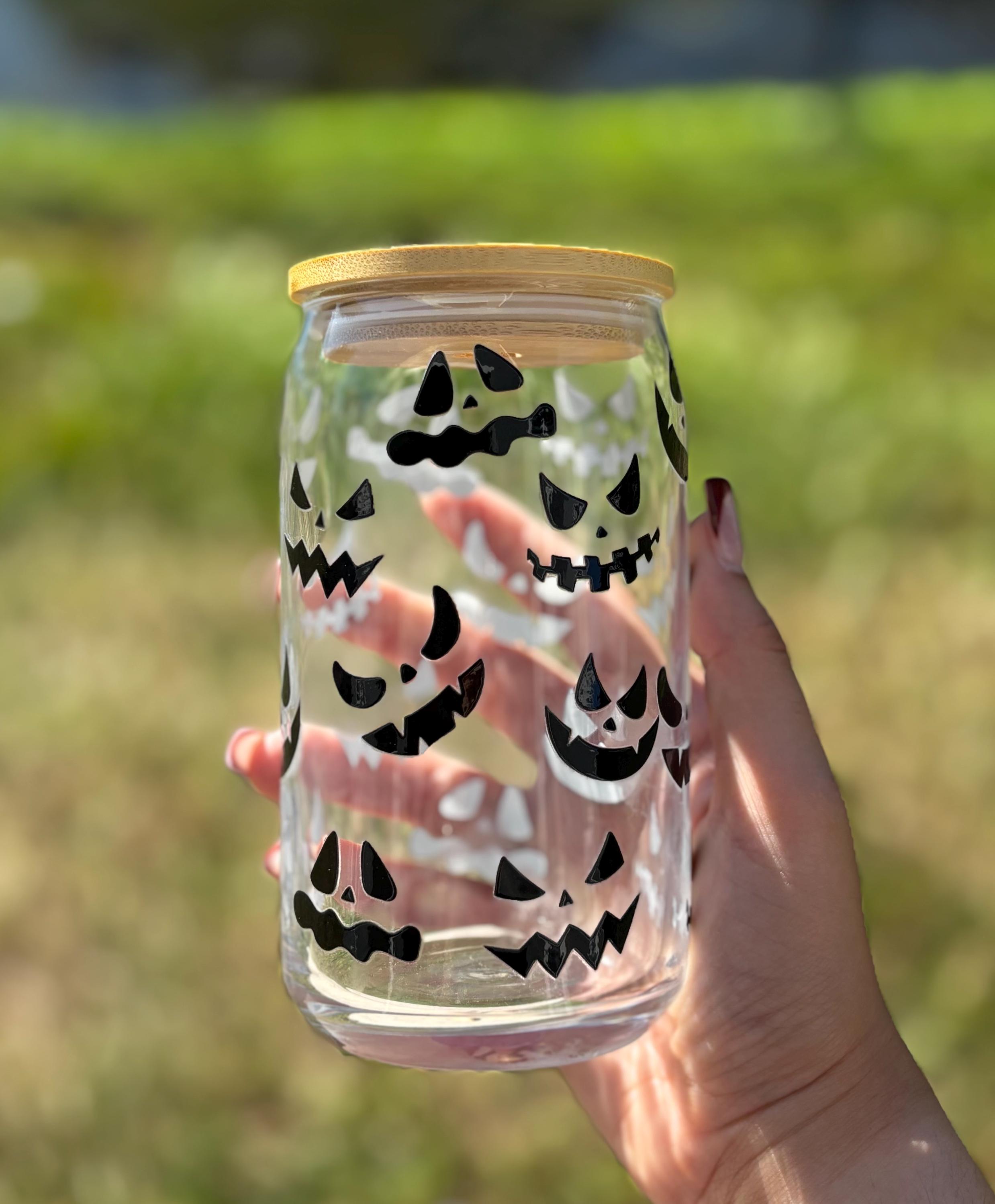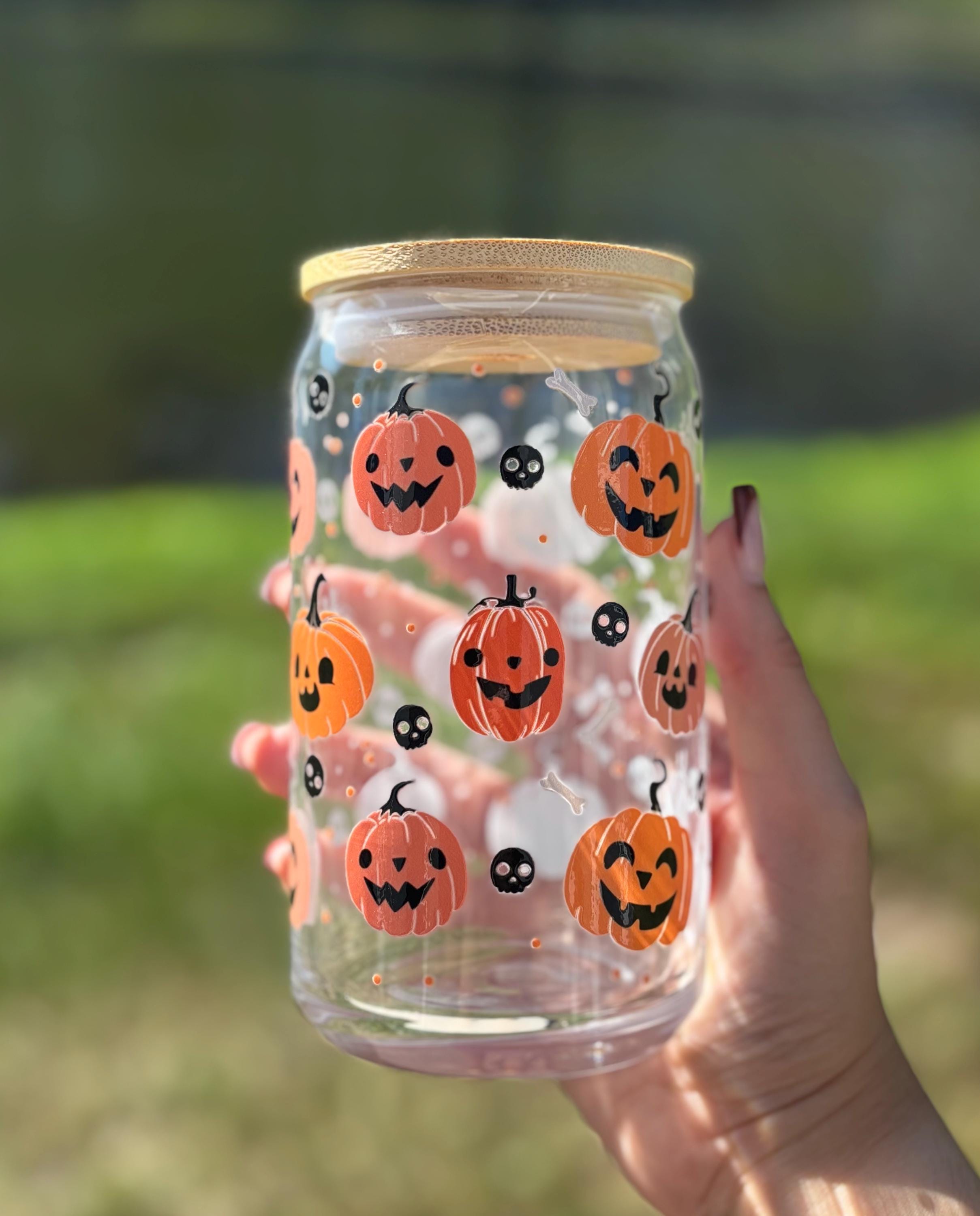 Sip in spooky style with this pumpkin face Halloween glass cup! Perfect for iced coffee, tea, or fall drinks, each cup features a fun pumpkin face design that brings the spirit of Halloween to your everyday routine. Whether you’re decorating for spooky season, treating yourself, or gifting a Halloween lover, this festive glass tumbler is the perfect mix of cute and spooky.